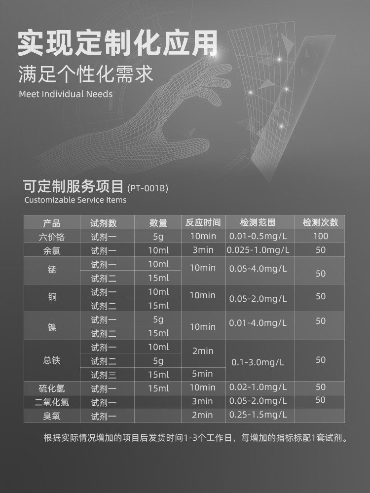 一款適用于工業(yè)污水、水產(chǎn)養(yǎng)殖等領(lǐng)域的檢測(cè)儀,配合檢測(cè)試劑,可“快速、簡單、準(zhǔn)確、穩(wěn)定”進(jìn)行測(cè)量,擁有精美的外觀造型,簡單的操作界面,準(zhǔn)確的檢測(cè)系統(tǒng),幫助用戶獲得精細(xì)的數(shù)據(jù),可更準(zhǔn)確、有效的分析水體狀況,提前預(yù)防養(yǎng)殖風(fēng)險(xiǎn),及時(shí)避免損失。 數(shù)據(jù)準(zhǔn)確,攜帶方便,檢測(cè)快速,操作簡單